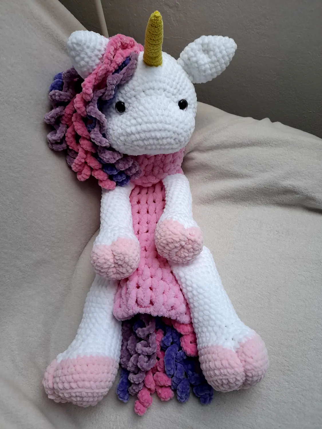 Pro kamarádku jsem vyrobila jednorožčího pyžamožrouta. Je nádherně nadýchaný a heboučký. Většina je z žinylkové příze Dolphin Baby. Návod jsem koupila na https://www.navodyodmonci.cz/